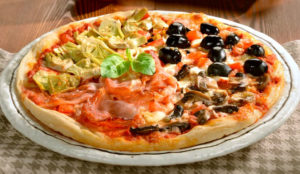 Ingredienti : Pomodoro, mozzarella, prosciutto cotto, funghi, carciofini, olive